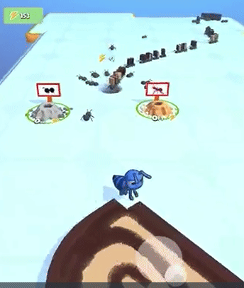 Building on the “visual satisfaction” of Monument Builder, I designed Ant Colony. Instead of NPC builders, the player controls a main ant that commands worker ants by dropping resources. I thought we can capitalize on the feeling of playing with ants as children. The appeal came from spawning ants, and watching the colony expand in real time.
